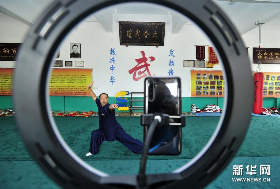 8月5日,石同鼎直播六合拳拳法。時(shí)值暑假,為減少聚集習(xí)武帶來(lái)的疫情風(fēng)險(xiǎn),同時(shí)豐富孩子們的暑期生活,六合拳第八代傳承人石同鼎在直播平臺(tái)開通了賬號(hào),每天帶領(lǐng)學(xué)生進(jìn)行網(wǎng)絡(luò)直播教學(xué)演示,通過(guò)“云端”傳承非遺文化。 今年59歲的石同鼎是泊頭六合拳第八代傳人,他自幼跟隨父親習(xí)武。2001年父親離世后,石同鼎便承擔(dān)起傳承六合拳的重任。2002年石同鼎建起六合武館,開始教徒弟習(xí)武練拳。 作為傳統(tǒng)武術(shù)中長(zhǎng)拳的一種,河北的泊頭六合拳有400余年歷史,被列入國(guó)家級(jí)非物質(zhì)文化遺產(chǎn)名錄。 “通過(guò)網(wǎng)上直播,更多的人可以了解六合拳、練習(xí)六合拳?!笔φf(shuō),他希望能把六合拳推向世界,傳得更遠(yuǎn)。新華社記者 牟宇 攝