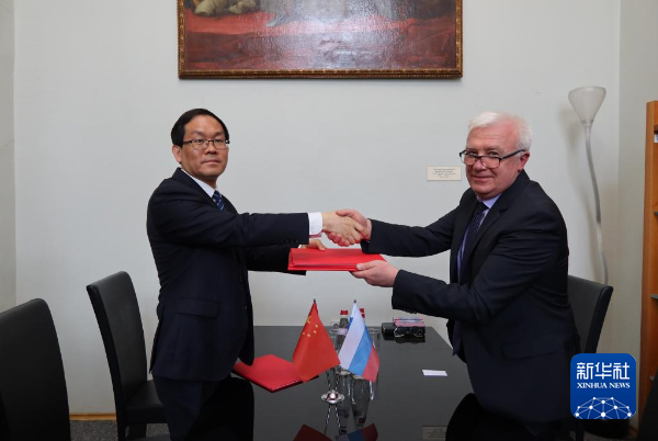 6月7日,在俄羅斯首都莫斯科,上海市歷史博物館館長周群華(左)與俄羅斯國家歷史博物館館長列維金簽訂友好合作備忘錄。新華社發(fā)