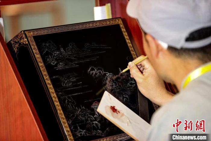 匠人在展示推光漆器工藝。(資料圖)張?jiān)茢z
