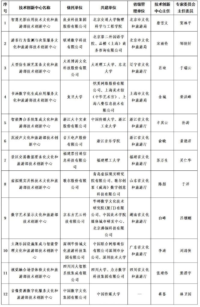 名單由文化和旅游部提供
