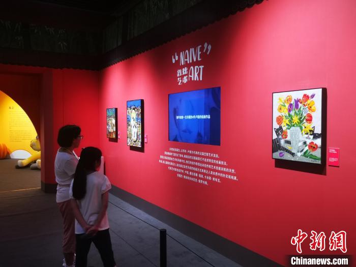 作為稚拙藝術(shù)畫作,此次展出的藝術(shù)畫作不同于學(xué)院派風格,呈現(xiàn)出自然天成、直接樸實的一面。藝術(shù)家在創(chuàng)作時,賦予貓咪一些人類特性,例如在一幅作品中,兩只貓相向而坐,似乎在討論案板上的魚肉是否符合胃口,“因為有的貓咪喜歡吃魚,有的喜歡吃雞肉,所以我們就進行了擬人化的解讀。”周詩卉說。