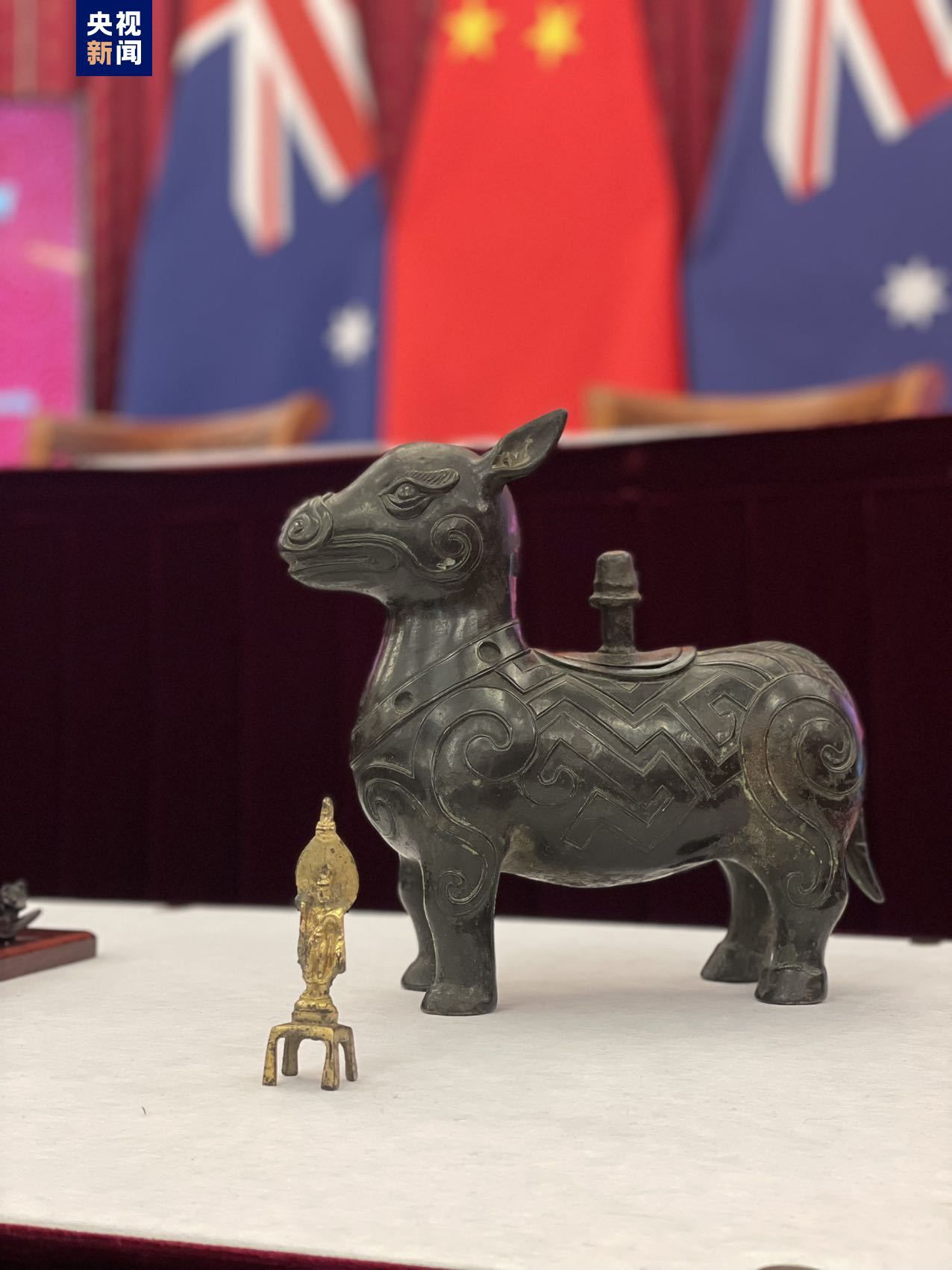 本次歸還的文物包括潛龍化石、鎏金觀音銅像和彩繪陶制人物騎馬俑。經(jīng)初步鑒定,潛龍化石屬于晚侏羅世到早白堊世的恐龍化石,而觀音銅像和騎馬俑的歷史可追溯到唐代甚至北朝,具有珍貴的歷史文化價(jià)值。同時(shí),澳大利亞國家美術(shù)館還另外向中國政府捐贈(zèng)了一件牛形的盛酒禮器——“犧尊”。我國文物專家通過對(duì)文物基本信息和圖片的判斷,鑒定這件“犧尊”用途為酒器,是明清或近代的仿古文物藝術(shù)品。