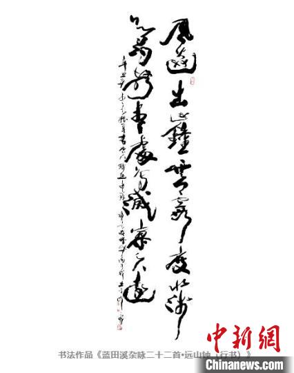 此次參展的《藍(lán)田溪雜詠二十二首·遠(yuǎn)山鐘(行書)》是韓天衡精心創(chuàng)作的書法作品。他深入感受古詩的韻律和意境,將詩意融入筆墨之中,作品筆勢(shì)流暢、氣韻生動(dòng),展現(xiàn)了漢字的靈動(dòng)之美與深厚的文化底蘊(yùn)。