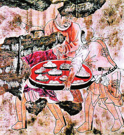 進(jìn)食圖(局部) 遼代壁畫