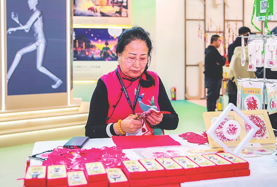 現(xiàn)場(chǎng)展示非遺剪紙。