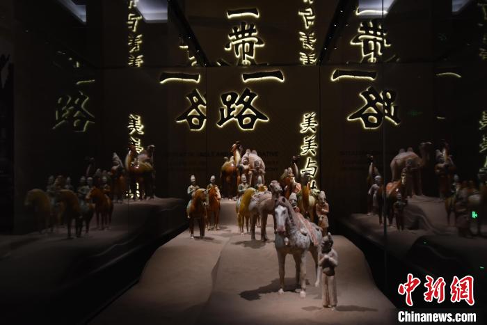 7月16日,河南洛陽,漢魏洛陽故城遺址博物館“一帶一路”展區(qū)勾勒出中外商旅不絕的場景。 王宇 攝