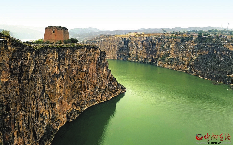 老牛灣三面環(huán)水,一面連山,呈牛頭形狀,古堡古村落聳峙在懸崖峭壁之上,古村房舍都采用當(dāng)?shù)厥膲酒龆?,石碾石磨隨處可見,石墻石院隨形而就,因此老牛灣還有石頭民俗博物館之稱。老牛灣的高臺(tái)之上,建有被譽(yù)為“黃河河防長(zhǎng)城第一堡”的老牛灣堡,守衛(wèi)著長(zhǎng)城與黃河。城堡北側(cè)的山崖邊,矗立著一座居高臨下俯瞰黃河的空心磚樓,它就是老牛灣的標(biāo)志望河樓。據(jù)《山西通志》載:老牛灣堡北至長(zhǎng)城0.5公里,明成化三年(1467)總兵王璽筑墻,崇禎九年(1636)兵備盧友竹建堡。望河樓屹立在這里已經(jīng)長(zhǎng)達(dá)近400年。史料記載:望河樓夏守邊而冬守河。夏季瞭望外敵從陸路過(guò)來(lái),冬季河面封凍,敵人容易從冰面上來(lái)犯,如果發(fā)現(xiàn)敵人來(lái)襲,則用燃放狼煙的方式向上一級(jí)匯報(bào),望河樓以此保護(hù)一方平安。