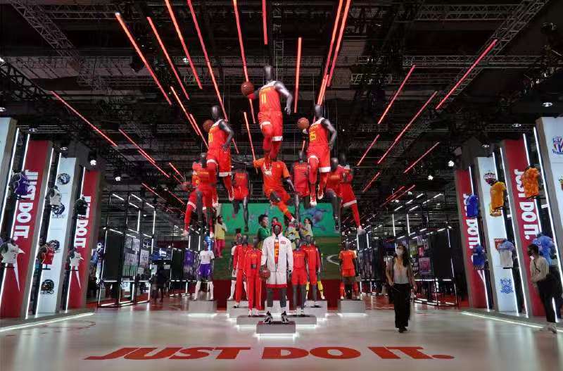 這是11月7日在進(jìn)博會消費品展區(qū)拍攝的耐克展臺。新華社記者 李任滋 攝