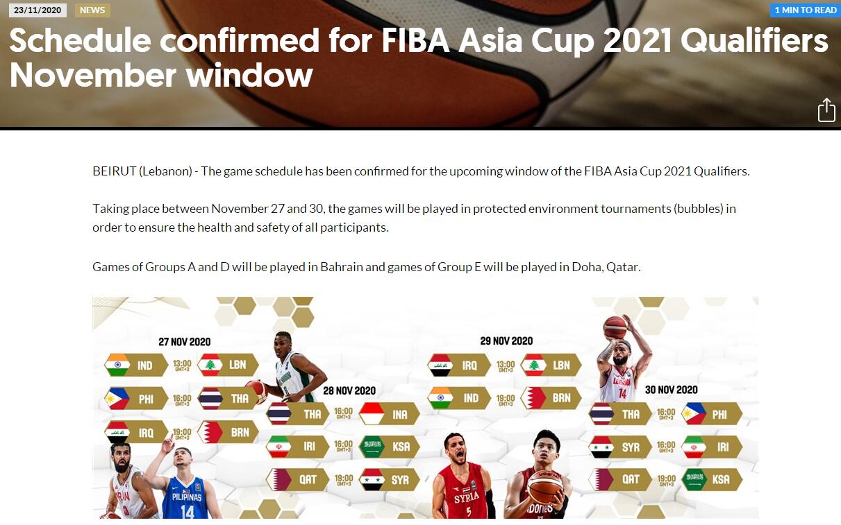據(jù)介紹,由于相關(guān)防疫規(guī)定,有些國家和地區(qū)籃協(xié)所屬政府當(dāng)局不允許球隊(duì)進(jìn)行國際旅行,進(jìn)而導(dǎo)致有些球隊(duì)無法參加本窗口期比賽,國際籃聯(lián)被迫對亞洲杯預(yù)選賽11月窗口期賽程進(jìn)行調(diào)整。
