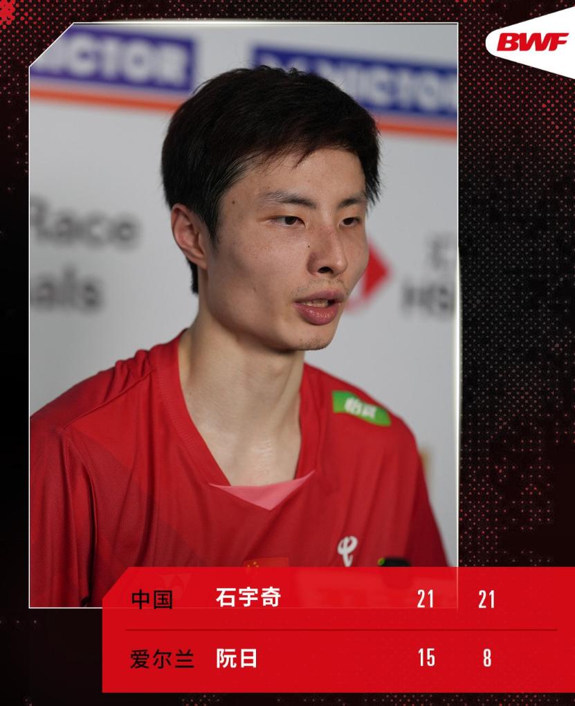 男單方面,國(guó)羽三人全部取勝。3號(hào)種子石宇奇以21:15、21:8戰(zhàn)勝愛爾蘭選手阮日,李詩(shī)灃以21:17、21:9擊敗中國(guó)香港隊(duì)的伍家朗。四分之一決賽兩人將捉對(duì)較量。