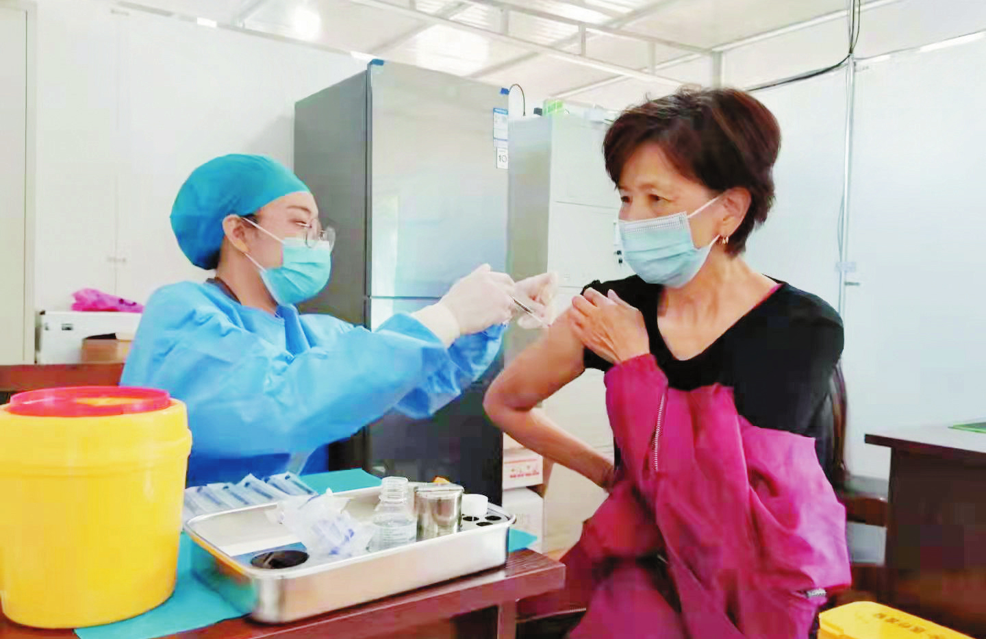 日前,在河曲縣醫(yī)療集團(tuán)新冠疫苗接種點(diǎn),醫(yī)務(wù)人員每天堅(jiān)守崗位,早出晚歸,加班加點(diǎn)為群眾進(jìn)行疫苗接種。(尹海青 攝)