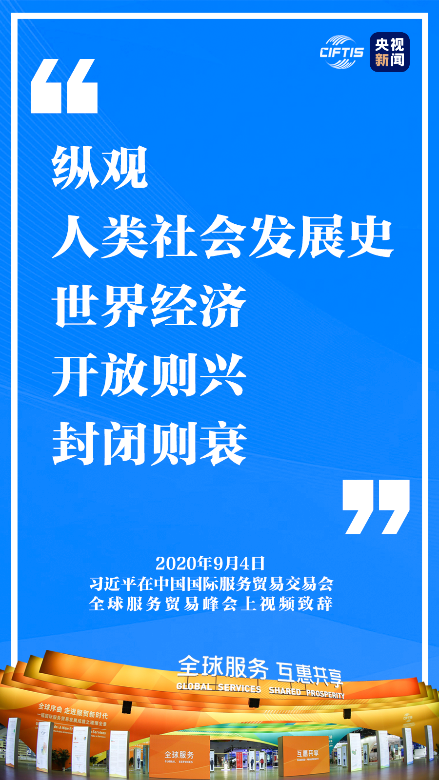 9月4日,國(guó)家主席習(xí)近平在2020年中國(guó)國(guó)際服務(wù)貿(mào)易交易會(huì)全球服務(wù)貿(mào)易峰會(huì)上視頻致辭。