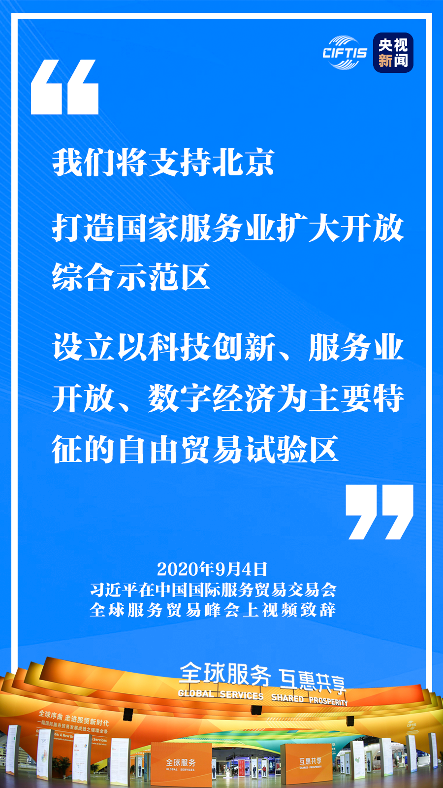 我們將支持北京打造國(guó)家服務(wù)業(yè)擴(kuò)大開(kāi)放綜合示范區(qū),設(shè)立以科技創(chuàng)新、服務(wù)業(yè)開(kāi)放、數(shù)字經(jīng)濟(jì)為主要特征的自由貿(mào)易試驗(yàn)區(qū)。