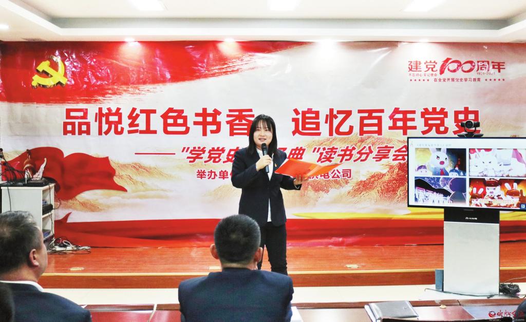 為慶祝中國(guó)共產(chǎn)黨成立100周年,推進(jìn)黨史學(xué)習(xí)教育走深走實(shí),重溫黨史,感悟初心使命,傳承紅色基因,國(guó)網(wǎng)寧武縣供電公司舉辦了“品悅紅色書(shū)香 追憶百年黨史”讀書(shū)分享會(huì)。圖為活動(dòng)現(xiàn)場(chǎng)。 (張正雨 攝)