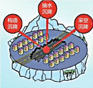 地面沉降是自然因素和人為因素綜合作用下形成的地面標(biāo)高損失。自然因素包括構(gòu)造下沉、地震、火山活動、氣候變化、地應(yīng)力變化及土體自然固結(jié)等。人為因素主要包括開發(fā)利用地下流體資源(地下水、石油、天然氣等)、開采固體礦產(chǎn)、巖溶塌陷、軟土地區(qū)與工程建設(shè)有關(guān)的固結(jié)沉降等。