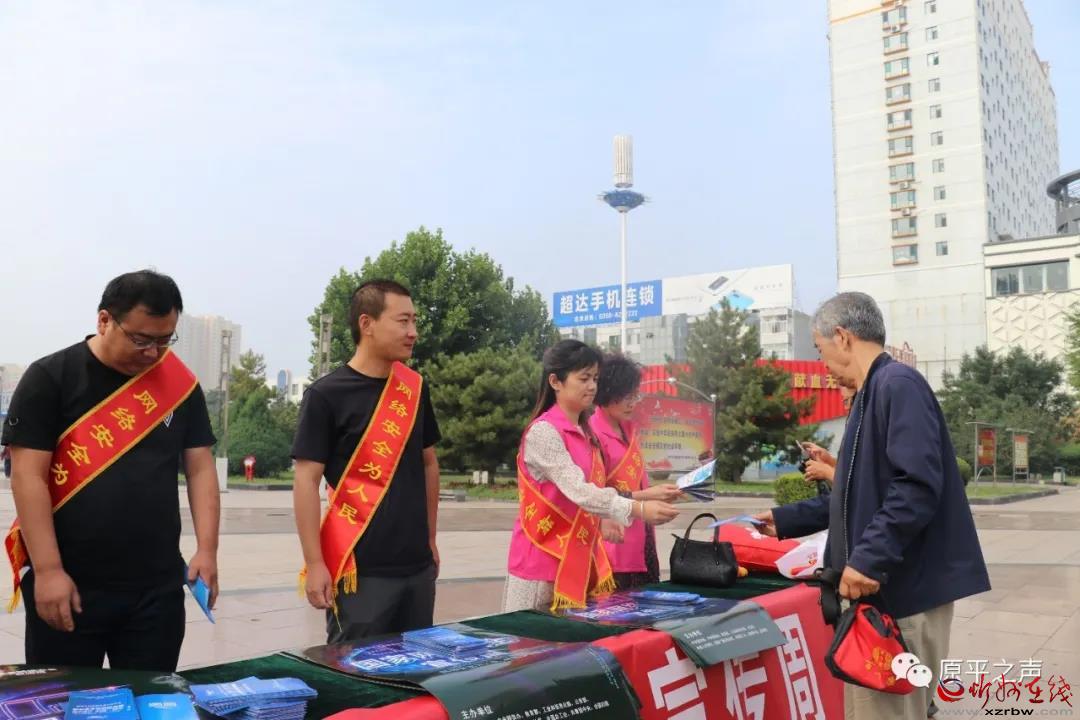 9月14日上午,原平市委宣傳部、市委網(wǎng)信辦、市公安局、市教科局、市工信局、團(tuán)市委、市婦聯(lián)、中國人民銀行等單位聯(lián)合在街心廣場開展集中宣傳,向市民發(fā)放宣傳資料。同時(shí),工作人員還走到街頭向過往群眾講解網(wǎng)絡(luò)安全基礎(chǔ)知識、個(gè)人信息保護(hù)等知識,極大地調(diào)動(dòng)廣大群眾參與網(wǎng)絡(luò)安全防護(hù)活動(dòng)的熱情。