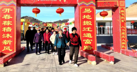 大峪坪易地搬遷點(diǎn)是晉中市太谷區(qū)完成整村搬遷入住的第一村,春節(jié)前夕,村兩委班子張羅著將小區(qū)布置一新,大門口制作了喜慶醒目的迎春牌樓,牌樓兩側(cè)寫有群眾自編的新春聯(lián),上聯(lián)是:開春稼穡沐新風(fēng),下聯(lián)是:易地搬遷通富路。東側(cè)的門柱上寫著:精準(zhǔn)扶貧,入小康無人掉隊(duì)。