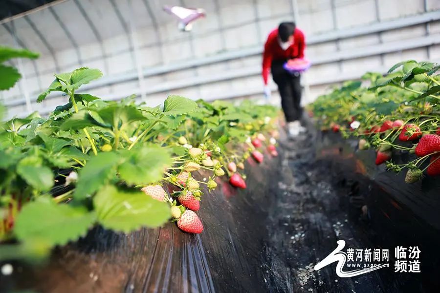 日前,山西省臨汾市堯都區(qū)北練李村果中果采摘園公司,果農(nóng)采摘草莓準(zhǔn)備銷售。