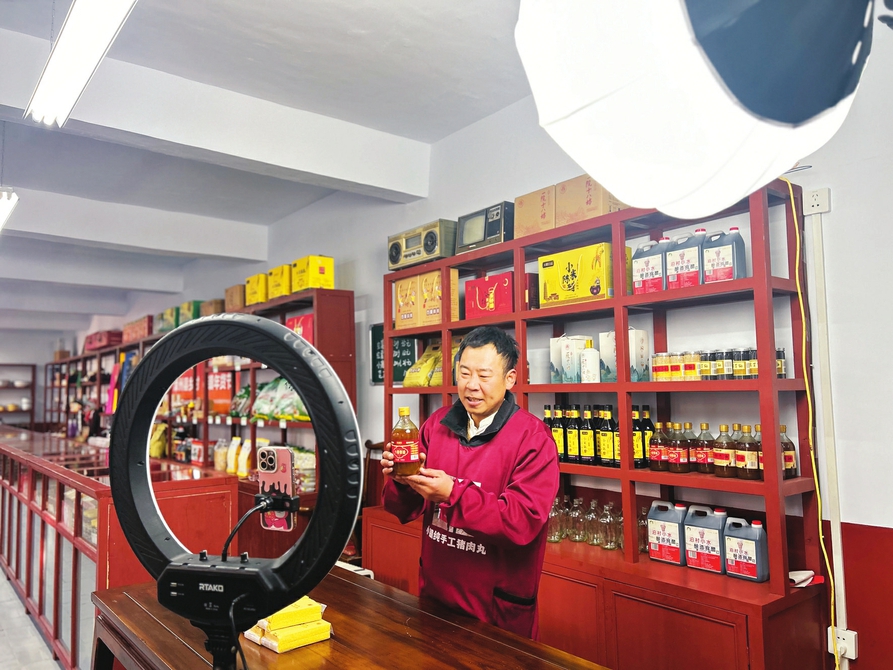 宋小朋在保福村供銷(xiāo)社里直播推介當(dāng)?shù)剞r(nóng)產(chǎn)品。晉睿攝