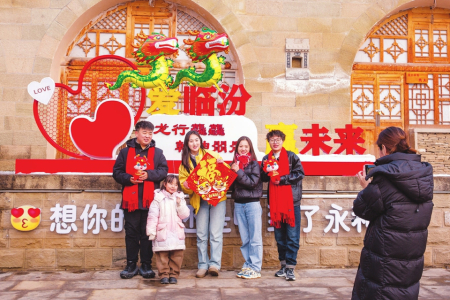 2月11日,在永和縣回家過年網(wǎng)紅打卡點,游客在拍照留念。春節(jié)期間,該縣舉辦了“紅紅火火過大年 熱熱鬧鬧來接龍”春節(jié)系列文化活動,讓游客在歡樂祥和的氛圍中歡度佳節(jié)。閆銳鵬攝