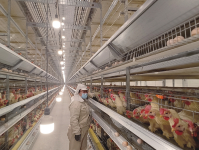 穿上無菌服,陳璐帶記者參觀雞舍。墻面是彩鋼夾芯板,耐腐、防火,保溫性能卓越,有效保障雞舍一年四季溫度恒定。雞籠表面是進口鋁鋅合金涂層,顯著降低破蛋率、污蛋率。雞舍內(nèi)安裝有智能環(huán)境控制系統(tǒng),實時顯示和控制雞舍內(nèi)溫度、濕度、二氧化碳濃度、光照、通風等環(huán)境指標?!耙坏┠骋豁椫笜说陀诨蛘叱^設定范圍,系統(tǒng)就會啟動各項設備,直至指標恢復正常。”陳璐說。