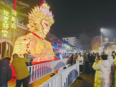①2月2日,長治市城隍廟前張燈結(jié)彩,眾多市民前來感受傳統(tǒng)年味。