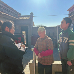 陽泉記者站記者霍雪茹在平定縣谷頭村村民吳維桑家中采訪。