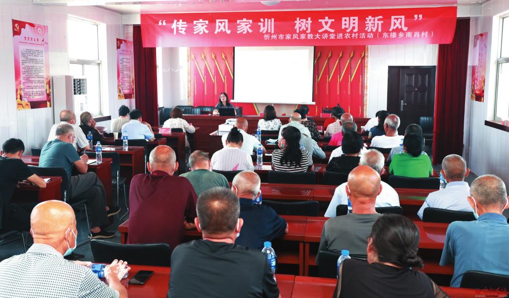 為大力弘揚優(yōu)良家風家訓,推動家庭美德建設,讓社會主義核心價值觀在家庭里生根、在親情中升華,近日,忻府區(qū)南肖村以“傳家風家訓、樹文明新風”為主題的大講堂開講。( 張存良 攝)