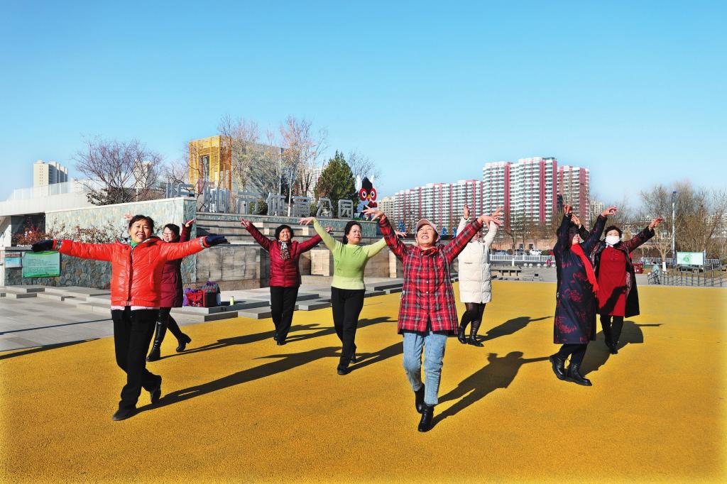 11月24日,舞蹈愛(ài)好者們?cè)谑畜w育公園廣場(chǎng)上翩翩起舞。近年來(lái),全民健身理念在我市深入人心,越來(lái)越多的市民從體育運(yùn)動(dòng)的旁觀者變身參與者。 (張存良 攝