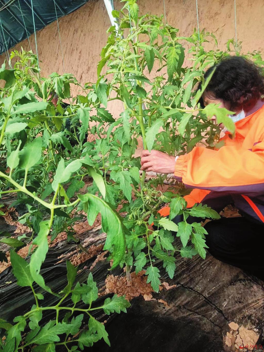 據(jù)了解,該大棚的管控依托于整個南作村周邊大田環(huán)境監(jiān)測設(shè)備對周邊環(huán)境的數(shù)據(jù)采集,利用風(fēng)速傳感器、風(fēng)向傳感器、雨量傳感器、太陽能土壤墑情數(shù)據(jù)采集,對土壤溫濕度電導(dǎo)率、土壤PH值傳感器中氮磷鉀信息進行實時采集。并配備了蟲情設(shè)備檢測儀器,通過太陽能蟲情測報燈、自動清蟲太陽能殺蟲燈、交流電殺蟲燈對大棚和大田的蟲情進行殺蟲處理。通過智能數(shù)據(jù)采集將大棚中的空氣溫濕度、光照強度、二氧化碳、大氣壓等信息實時導(dǎo)入管理系統(tǒng),根據(jù)其數(shù)值和農(nóng)業(yè)作物的數(shù)據(jù)需求,實現(xiàn)自動卷簾調(diào)節(jié)溫濕度。另外,根據(jù)農(nóng)作物的營養(yǎng)需求,應(yīng)用水肥一體化設(shè)備把營養(yǎng)液和預(yù)防藥物進行了自動化的管控,確保農(nóng)作物生長在健康的環(huán)境中,產(chǎn)出市民放心的蔬菜。圖為技術(shù)人員在察看番茄結(jié)果狀況。 (本報記者 李 濤攝