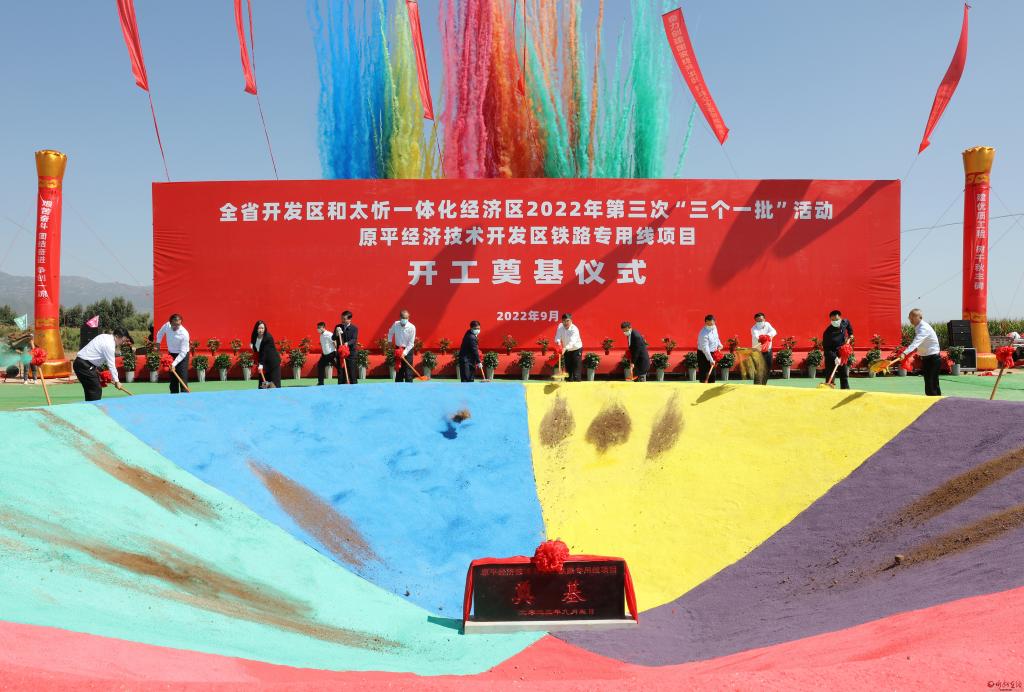 簽約儀式結(jié)束后,與會人員赴“開工一批”代表項目原平經(jīng)濟(jì)技術(shù)開發(fā)區(qū)鐵路專用線項目建設(shè)點舉行奠基儀式,隨后,赴“投產(chǎn)一批”代表項目萬星新材料產(chǎn)業(yè)園(山西)有限公司生產(chǎn)車間現(xiàn)場觀摩。本次活動,全市開發(fā)區(qū)開工項目30個,總投資145億元;投產(chǎn)項目23個,總投資59億元。太忻一體化經(jīng)濟(jì)區(qū)忻州片區(qū)開工項目64個,總投資247億元;投產(chǎn)項目27個,總投資133億元。