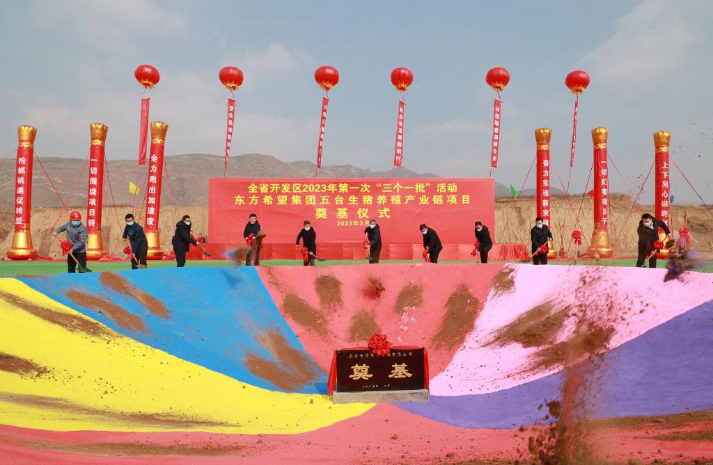 共同為“開(kāi)工一批”重點(diǎn)項(xiàng)目東方希望集團(tuán)東雷養(yǎng)殖項(xiàng)目培土奠基。張存良 攝