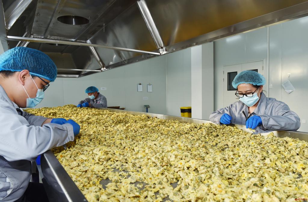 在農(nóng)業(yè)特優(yōu)館觀摩檢查藥茶專業(yè)鎮(zhèn)系列產(chǎn)品情況。馮曉磊 攝