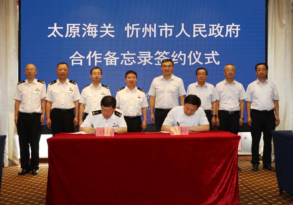 8月6日,忻州市人民政府與太原海關(guān)合作備忘錄簽約儀式在忻舉行。市委副書記、市長李建國,太原海關(guān)黨委書記、關(guān)長江林分別致辭;市政府黨組成員孟宏斌、太原海關(guān)副關(guān)長廉慧鋒代表雙方簽約;市政府秘書長張艮生主持簽約儀式。太原海關(guān)、忻州海關(guān),忻州市商務(wù)、財政、公安、市場監(jiān)管部門和五臺山機場負責(zé)人等見證簽約。