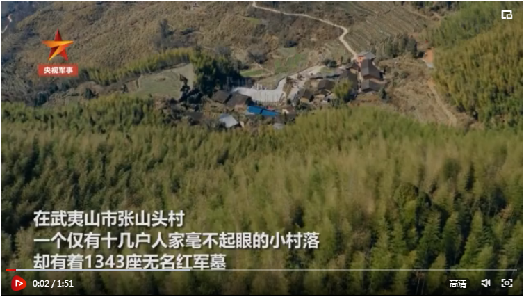 福建張山頭村竹林中,有1343座無名紅軍墓,每座墓僅一根紅飄帶、一個編號做標記。革命戰(zhàn)爭年代,這里曾是閩北蘇區(qū)紅色首府所在地的中心地帶,不少傷病員在村里的紅軍中醫(yī)院療養(yǎng)。敵人“圍剿”,藥品不足,斷米斷菜,很多將士犧牲了,村民就把他們葬在醫(yī)院后方,3塊青磚做墓門。為保護家人,這些紅軍沒有留下名字……(胡渝 任超 張馨尹)