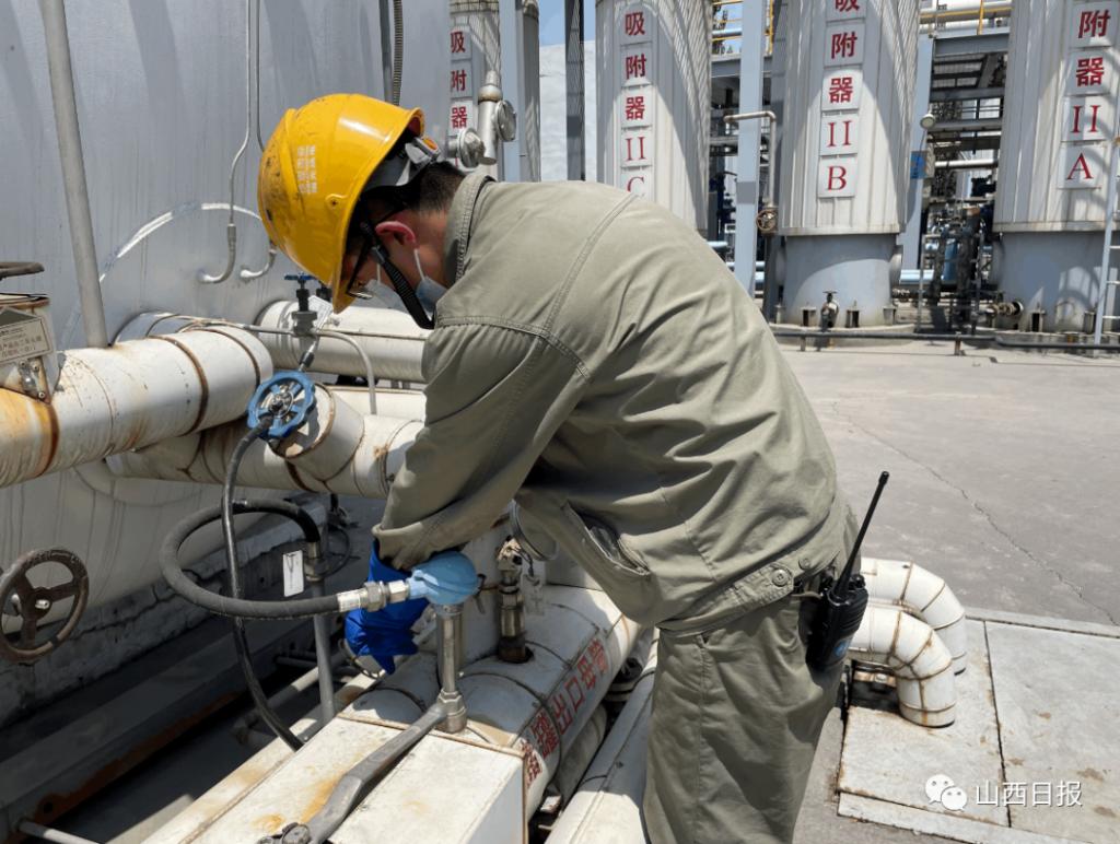 ▲二氧化碳樣本采集中 變廢為用,科技助力低碳 作為山西省重點(diǎn)熱電聯(lián)產(chǎn)企業(yè),變廢為用,是瑞光熱電在煤炭清潔低碳發(fā)展方向上打出的實(shí)招。烈日炎炎之下,山西瑞光熱電有限責(zé)任公司發(fā)電部副主任申永亮正戴著厚厚的操作手套采集二氧化碳樣本。擰開(kāi)閥門(mén)的一瞬間,白色霧氣就在他手中的采集杯里結(jié)了一層薄冰。 “二氧化碳捕集主要采用變溫變壓吸附法碳捕集工藝,可以去除煙氣中含有的醇等各種有機(jī)化合物,不僅可以大大減少二氧化碳?xì)怏w,同時(shí)也可以實(shí)現(xiàn)廢物利用?!鄙暧懒两榻B,瑞光熱電投資3170萬(wàn)元建設(shè)了二氧化碳捕集及綜合利用項(xiàng)目,每年可生產(chǎn)食品級(jí)二氧化碳3000噸,“生產(chǎn)出來(lái)的二氧化碳主要用在工業(yè)、農(nóng)業(yè)、食品業(yè)等領(lǐng)域,優(yōu)勢(shì)明顯。比如,許多蔬菜大棚在應(yīng)用了二氧化碳之后,農(nóng)作物的質(zhì)量與產(chǎn)量都有了很大提升?!?/p>