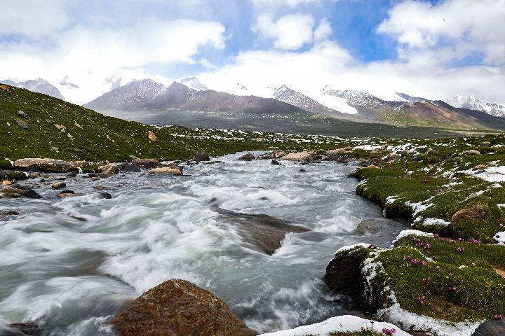 這是2022年7月21日在長(zhǎng)江源地區(qū)拍攝的河道。新華社記者張龍 攝