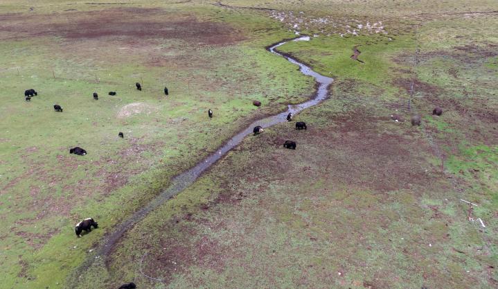 在平均海拔超4500米的長(zhǎng)江源區(qū),牦牛、藏羊是當(dāng)?shù)啬撩袷来蕾嚨纳?jì)來源。一些區(qū)域過去牛羊超載,生態(tài)惡化。