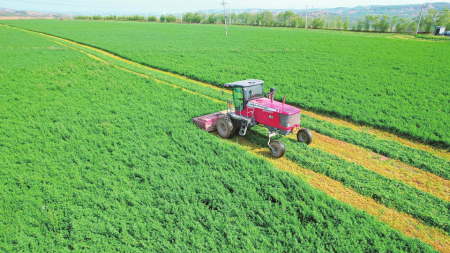 朔州市立足資源優(yōu)勢(shì),大力發(fā)展草牧業(yè),圖為苜蓿收割現(xiàn)場(chǎng)。(資料圖片)