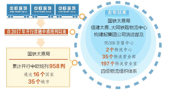 “自2017年開(kāi)行首趟中歐班列以來(lái),國(guó)鐵太原局累計(jì)開(kāi)行的中歐班列已有958列,通達(dá)16個(gè)國(guó)家、35個(gè)城市。”國(guó)鐵太原局貨運(yùn)部科長(zhǎng)田源介紹,“中歐班列已經(jīng)成為不沿海、不沿邊的山西省對(duì)外開(kāi)放重要平臺(tái)。”
