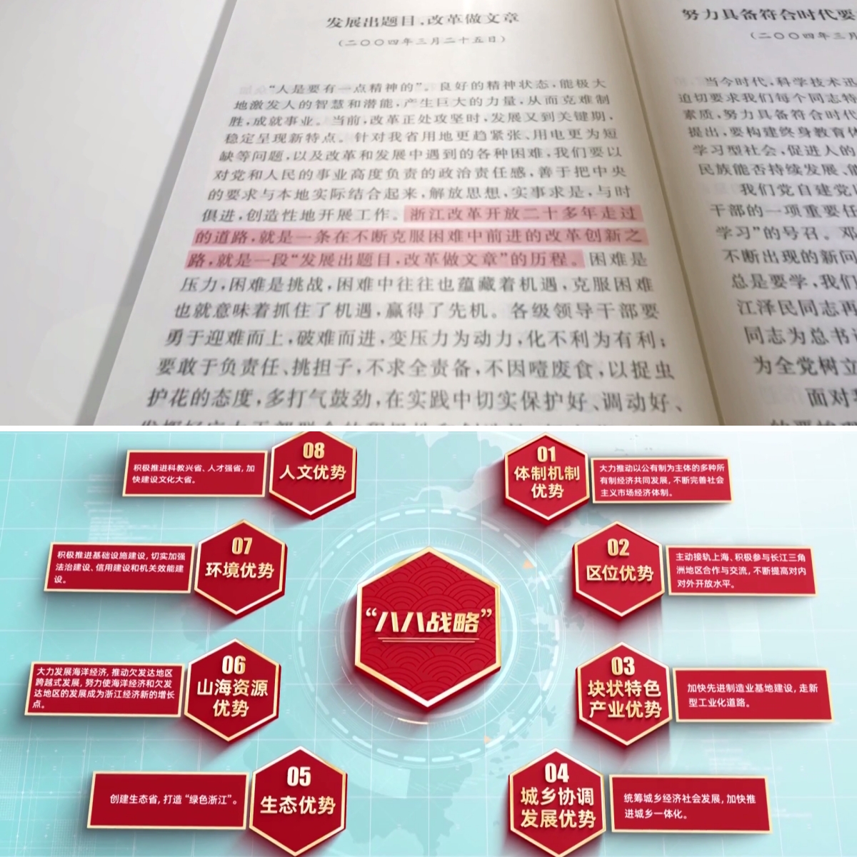 2003年7月10日,浙江省委十一屆四次全會上,習近平首次系統(tǒng)提出“八八戰(zhàn)略”。