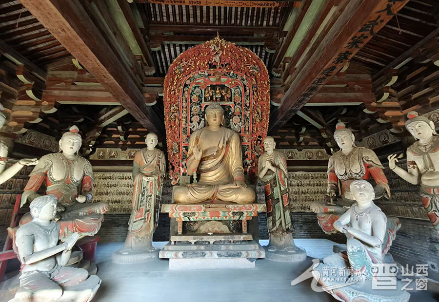 鎮(zhèn)國寺和雙林寺都是平遙縣內(nèi)世界文化遺產(chǎn)的重要組成部分。鎮(zhèn)國寺位于平遙縣東北的郝洞村,初名“京城寺”,明嘉靖時(shí)改稱“鎮(zhèn)國寺”,現(xiàn)存寺院共有兩進(jìn)院落,坐北朝南,從前至后沿中軸線建有天王殿樓等主要建筑。其中,位于寺院中部的萬佛殿建于北漢年間,是中國現(xiàn)存最古老的木結(jié)構(gòu)建筑之一,被稱為“千年瑰寶”,是中國佛教寺院中現(xiàn)存的三處五代建筑之一,其中的彩塑,更是全國寺廟殿宇中保存至今的唯一五代作品。