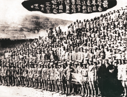 圖5 從1937年9月成立到1938年,戰(zhàn)動(dòng)總會(huì)先后在第二戰(zhàn)區(qū)內(nèi)組建了17個(gè)游擊支隊(duì),另有山西工人武裝自衛(wèi)旅(簡(jiǎn)稱工衛(wèi)旅)、察綏游擊軍、1個(gè)政治保衛(wèi)隊(duì)、2個(gè)地方游擊隊(duì),還有戰(zhàn)區(qū)各縣游擊隊(duì)、自衛(wèi)隊(duì)等。圖為1942年10月工衛(wèi)旅在興縣舉行成立5周年紀(jì)念大會(huì)后,司令部與政治部全體干部合影。