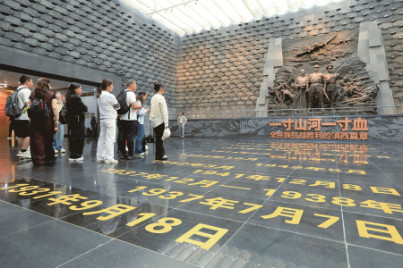 圖②:9月18日,人們在侵華日軍南京大屠殺遇難同胞紀(jì)念館參觀。