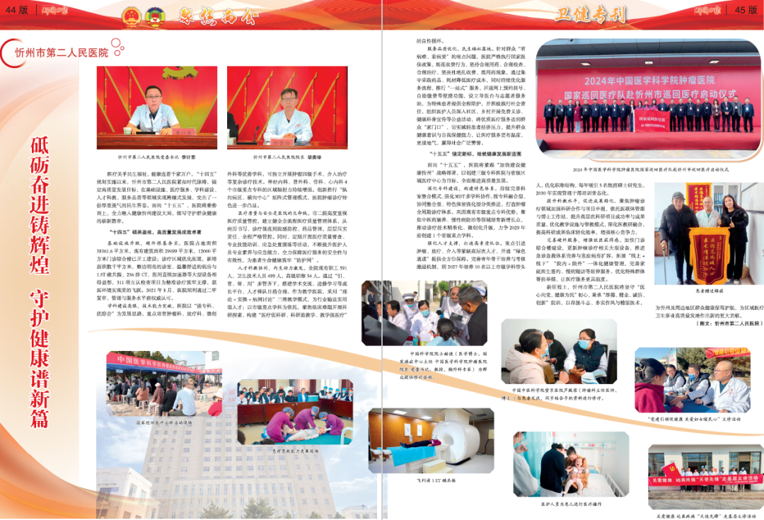 醫(yī)療關(guān)乎民生福祉,健康連著千家萬(wàn)戶。“十四五”規(guī)劃實(shí)施以來(lái),忻州市第二人民醫(yī)院緊扣時(shí)代脈搏,錨定高質(zhì)量發(fā)展目標(biāo),在基礎(chǔ)設(shè)施、醫(yī)療服務(wù)、學(xué)科建設(shè)、人才科教、服務(wù)品質(zhì)等領(lǐng)域?qū)崿F(xiàn)跨越式發(fā)展,交出了一份厚重提氣的民生答卷。面向“十五五”,醫(yī)院將乘勢(shì)而上,全力融入健康忻州建設(shè)大局,續(xù)寫守護(hù)群眾健康的嶄新篇章。
